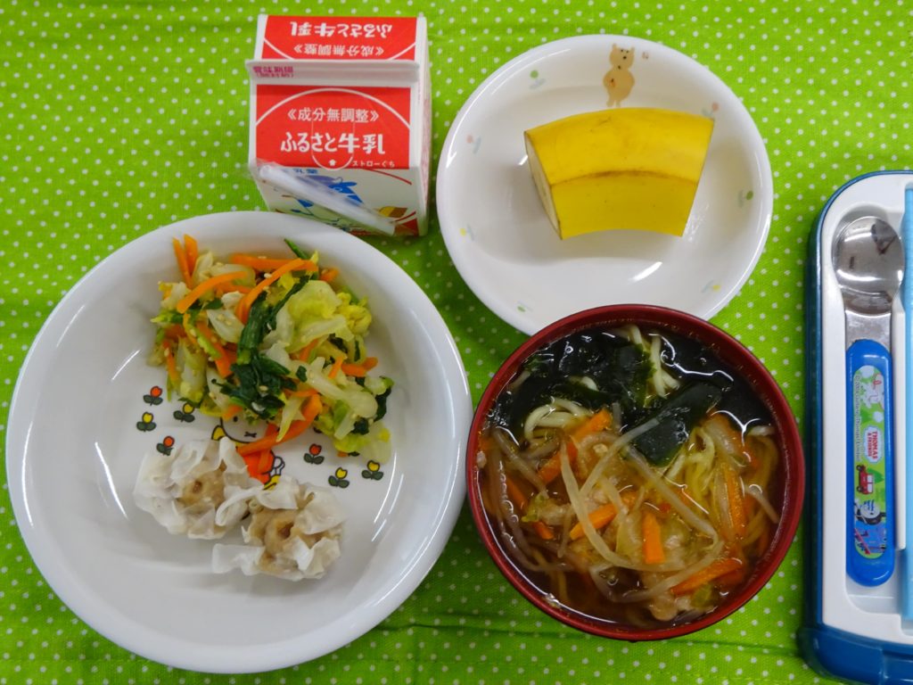 やみつきキャベツ、牛乳、バナナ